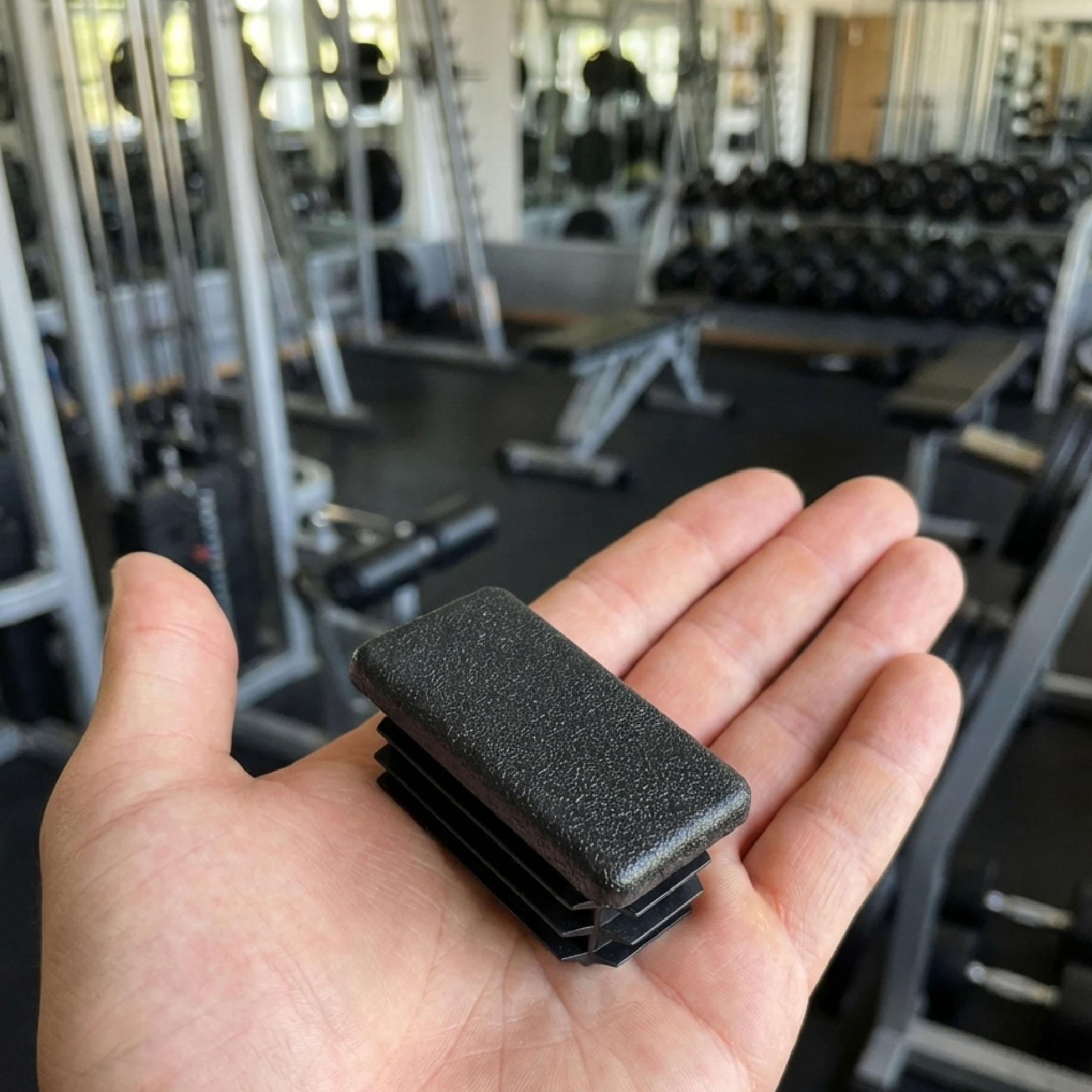 Пластиковые заглушки сделали безопасной мини-тренажёрку в гараже.